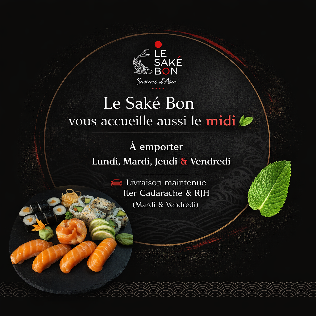Bienvenue au Saké Bon, votre bar à sushis et cuisine asiatique à Rians, spécialisé dans la vente à emporter et la livraison. Nous vous proposons une large sélection de plats japonais, chinois et vietnamiens : sushis, makis, nems, nouilles sautées, ainsi que de savoureuses spécialités à base de viande ou de poisson.